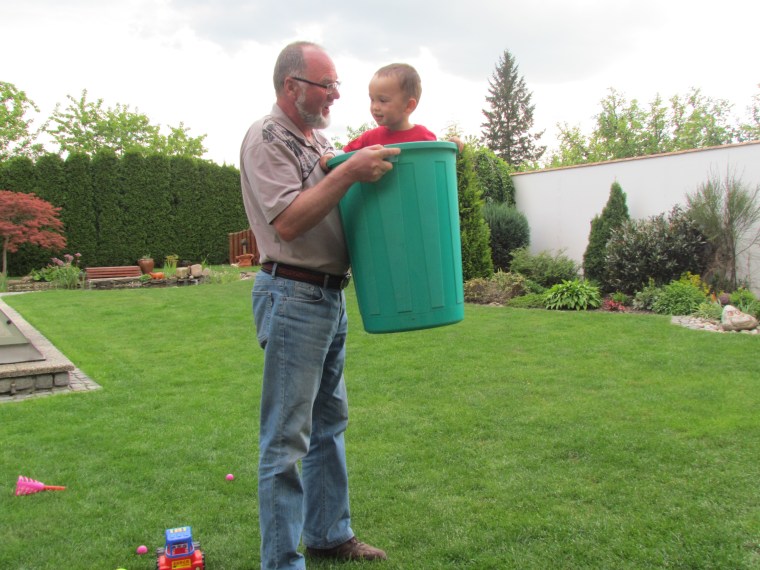 They had a very beautiful backyard and Jakub immensely enjoyed playing there with his grandpa.