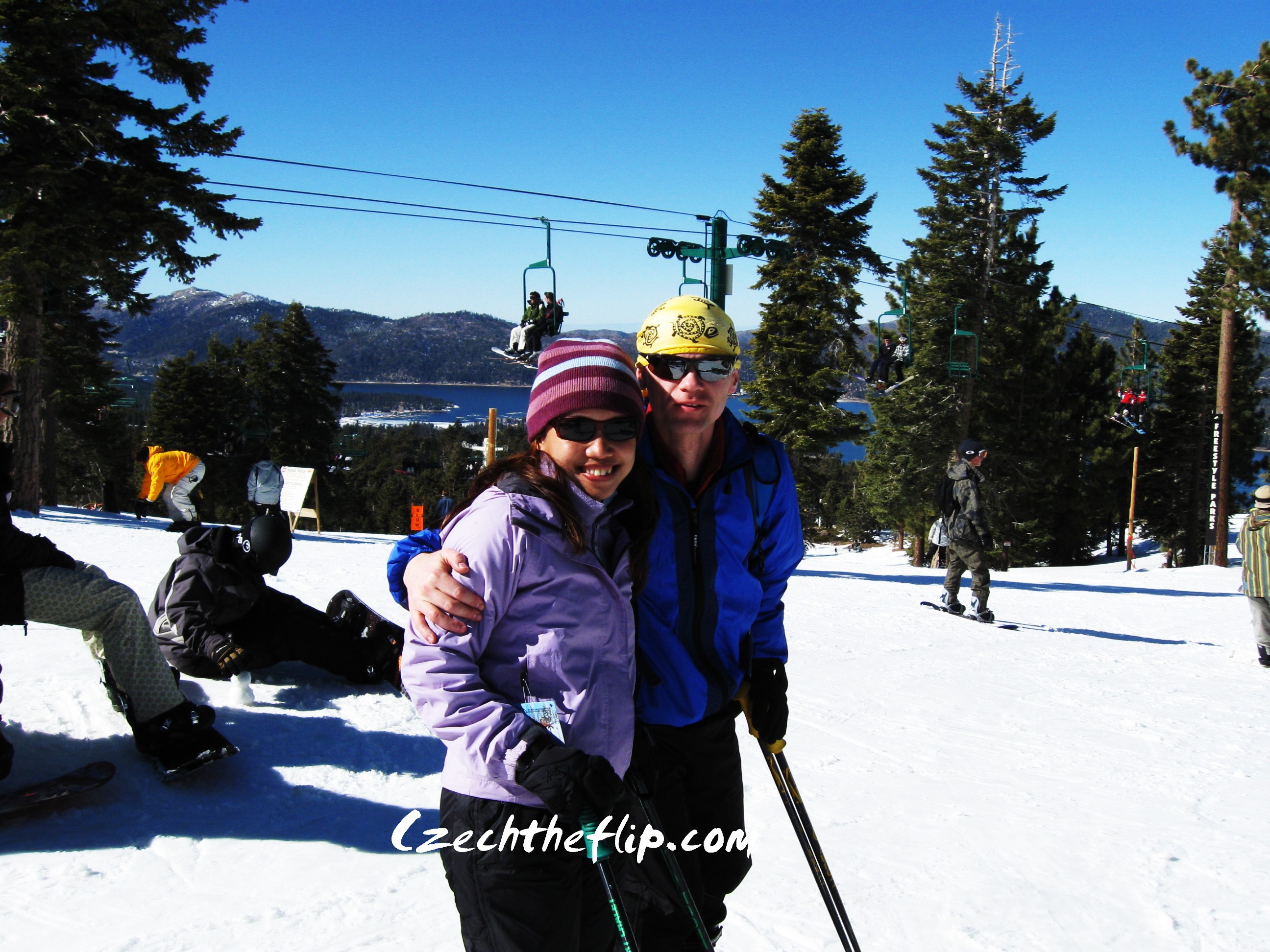 During a ski trip at Big Bear Lake, California.